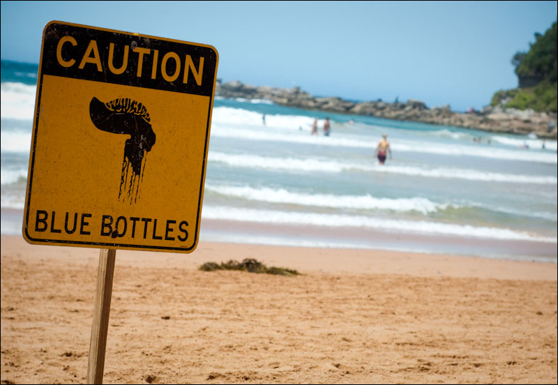 Blue Bottles Posted on 28 février 2009 Attaque de méduse ce matin en surfant, une belle blue bottle (non mortelle) s’est posée sur mon bras. La douleur est, comment dire, insupportable.