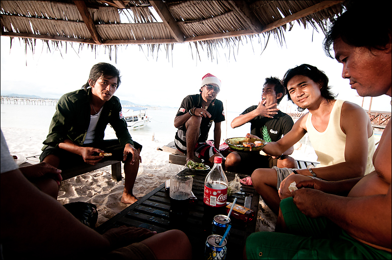 Very nice la bouteille Coca-Cola avec le bonnet de Père Noël sur fond de paradis! Critique de la société de consommation occidentale? ^^